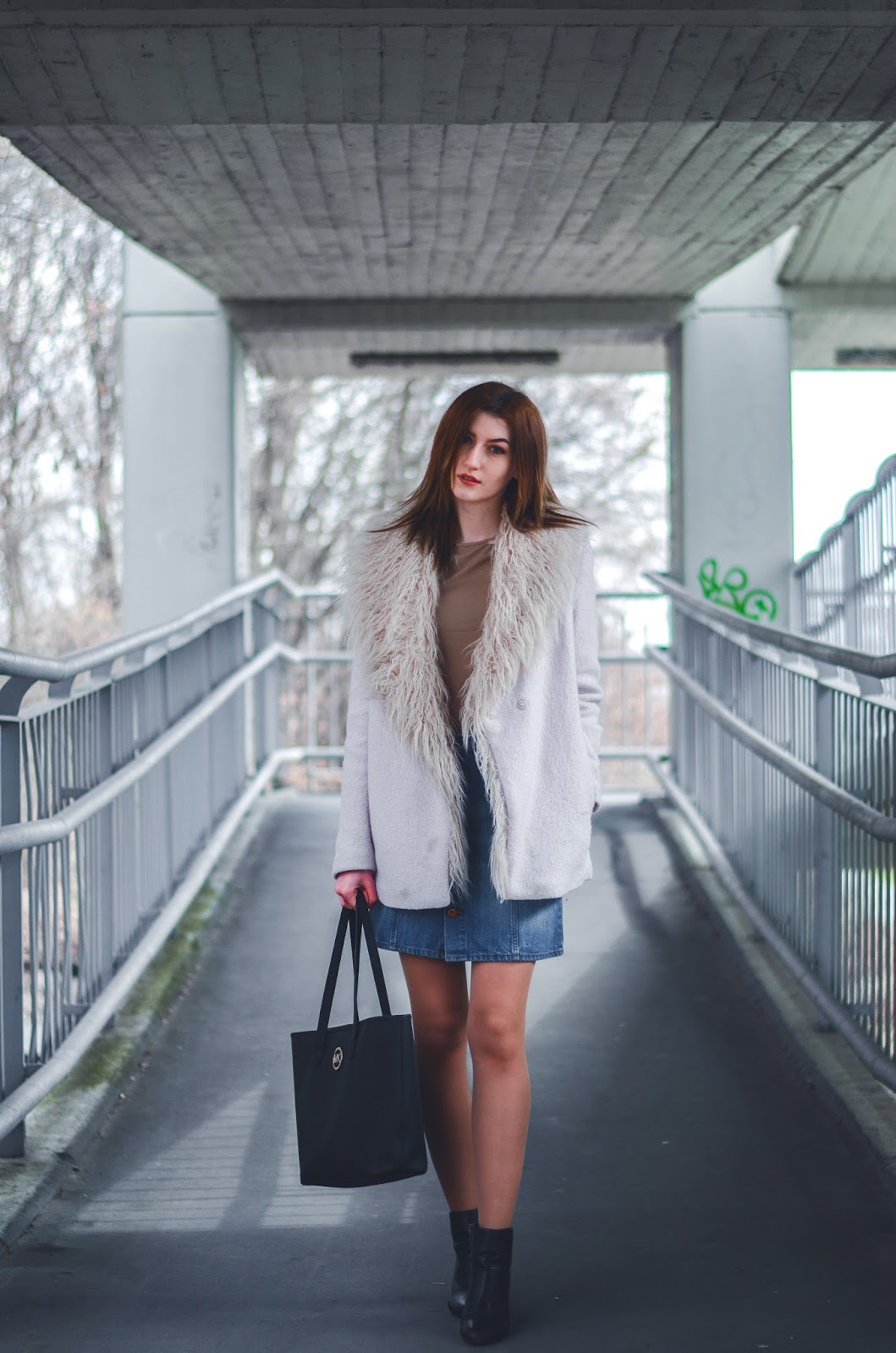 skirt - H&M / shoes - Bershka / fur coat - Zara / tee - Zara / bag - Michael Kors / lipstick - Astor